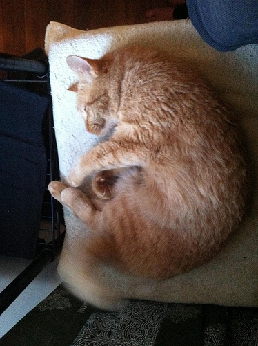 'Scuse is showing some brattiness, as he was doing at my house, too, in that he wants ALL THE ATTENTION. But he's lovable and sweet, so it's awfully hard to be mad at him. Red is backing down rather easily, so Tam suspects he's feeling insecure about his blind-side.They went to the vet on Thursday, for a proper check up. (Everything that had been done in AZ was triage-- get the eye problem under control/neuter/test/vaccinate. This was a real exam.) Other than known problems (ie Red's eye) and normal outdoor-cat problems (ie: worms), they got a clean bill of health!! HUZZAH! 'Scuse needs to gain about a pound-- he's just a small cat, evidently. 'Scuse also needs to be shaved, tee hee. Turns out the mats he has are pretty much his undercoat being dirty, and it's not really fixable without shaving. (Grooming wasn't very helpful.) This will wait until it's warmer, however. (And then I SO want to see pictures of naked 'Scuse...)